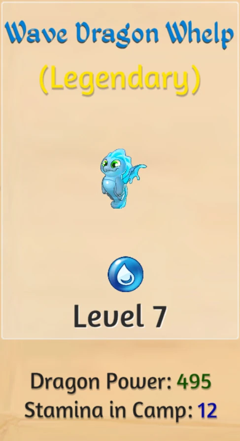 | 7 | Legendary | Wave Dragon Whelp | 495 | 12 | 500 |