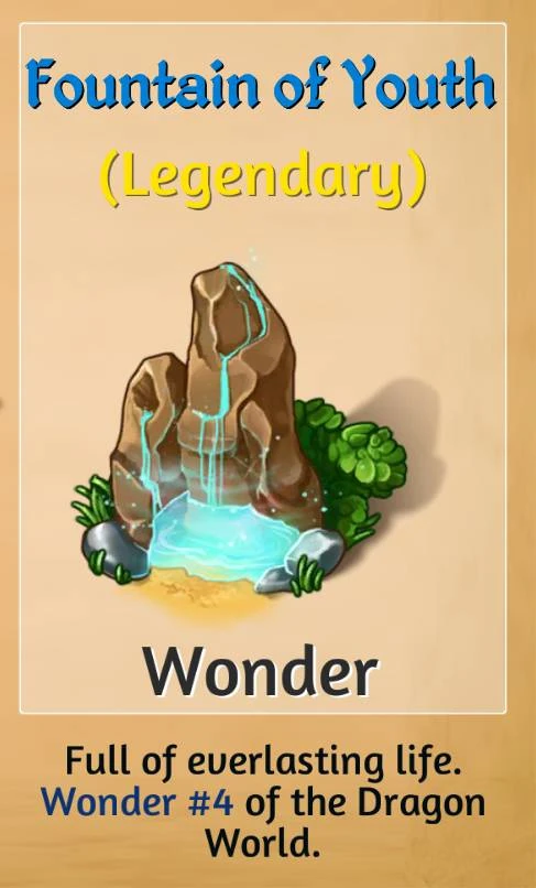 A Fountain of Youth is the last level of the Hills and Wonder #4 of the Merge Dragons World. It cannot be merged further.