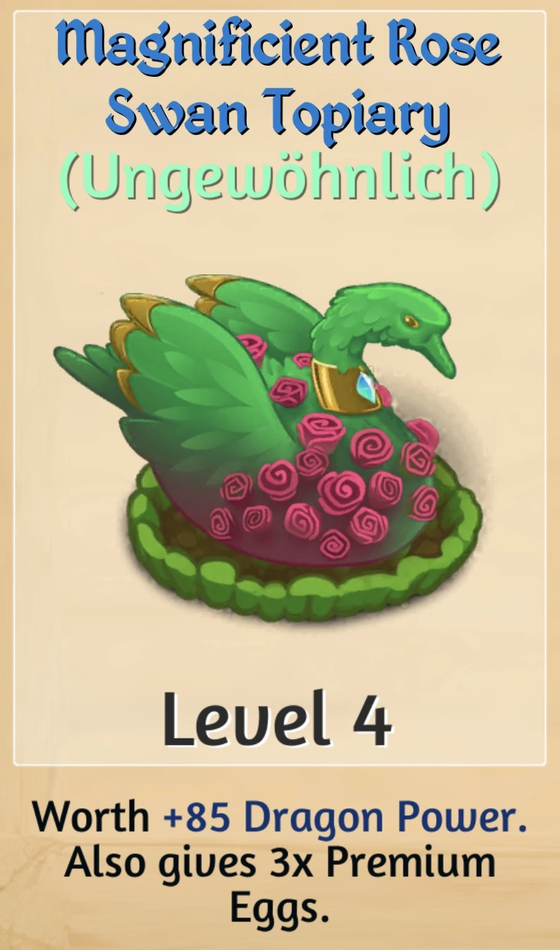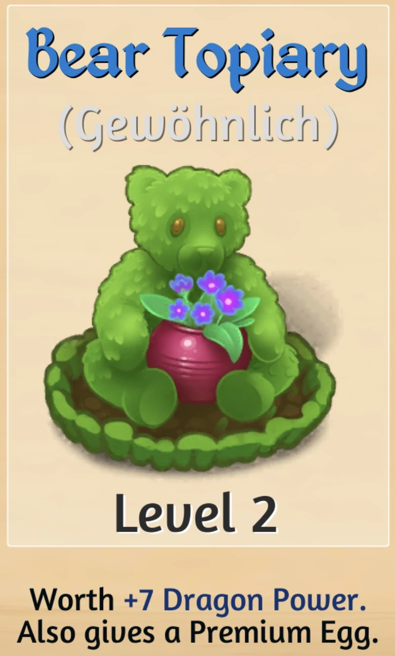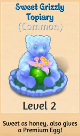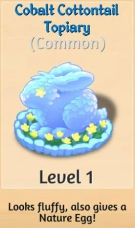 Extremely rare Merge Chain. Level 1 Cobalt Cottontail Topiary is available either as a prize for some high-level Portal Upgrade Quests, or as the Boutique Shop's offer for 399 Dragon Gems. | |