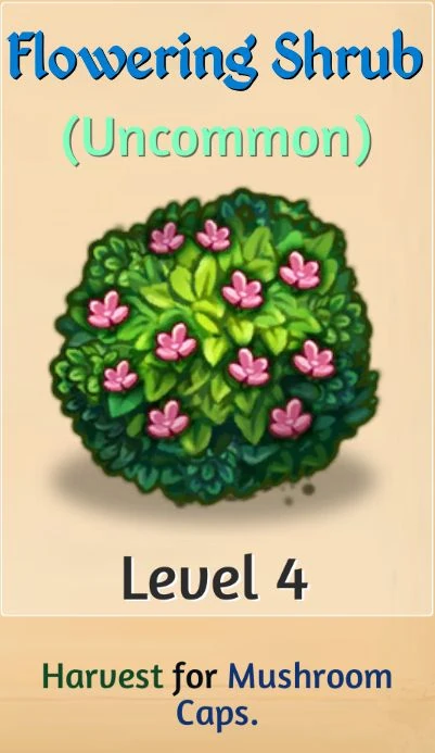 | Wood | Level 4 produces level 1 Bushes. | |
