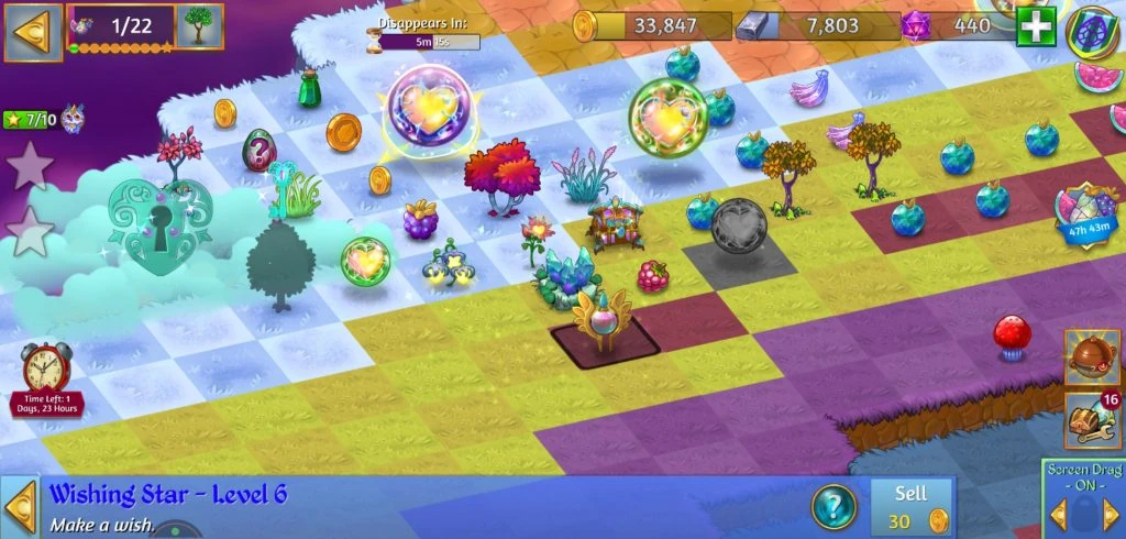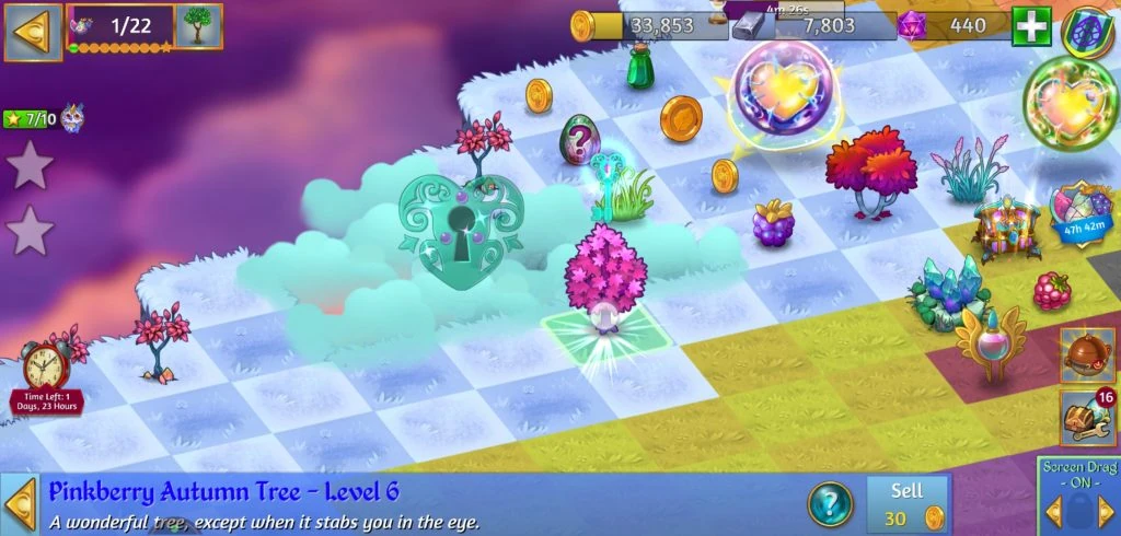 The Event offered 10 prizes, one for each tier of points accumulated. Every time sufficient points were accumulated, the counter was reset for the next goal. The points could be achieved by tapping the Crystal Fruit which could be found either by harvesting/tapping the Crystal Trees, harvesting the Crystal Sources, healing the Dead Land, unlocking the Cloud Keys, opening the Crystal Chests and the Secret Merge Dragons! Birthday Capsules and tapping the Event Quest Stars.