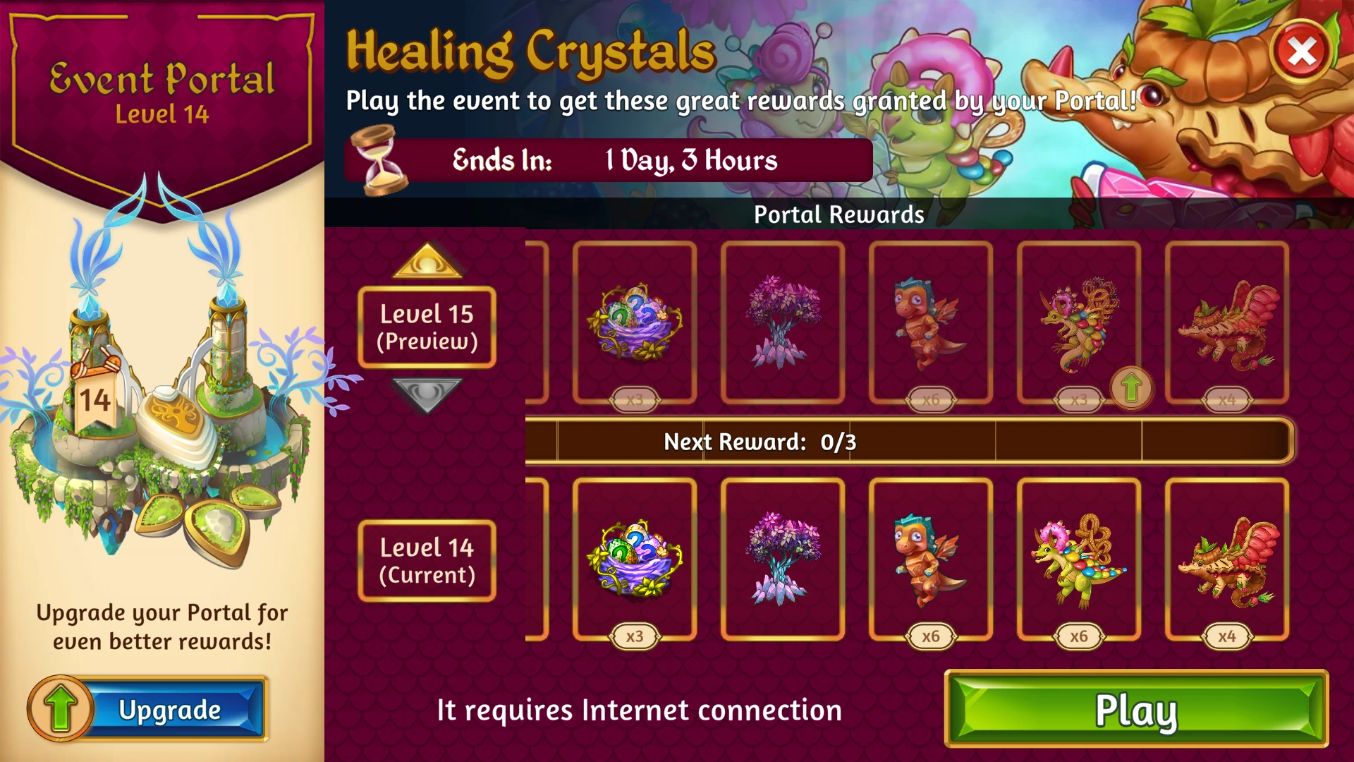 In order to participate, the players must have an active internet connection and 100 Dragon Power. Connectivity issues during the Event will result in prohibiting the ability to participate and freezing the progress in the level until connection is re-established.