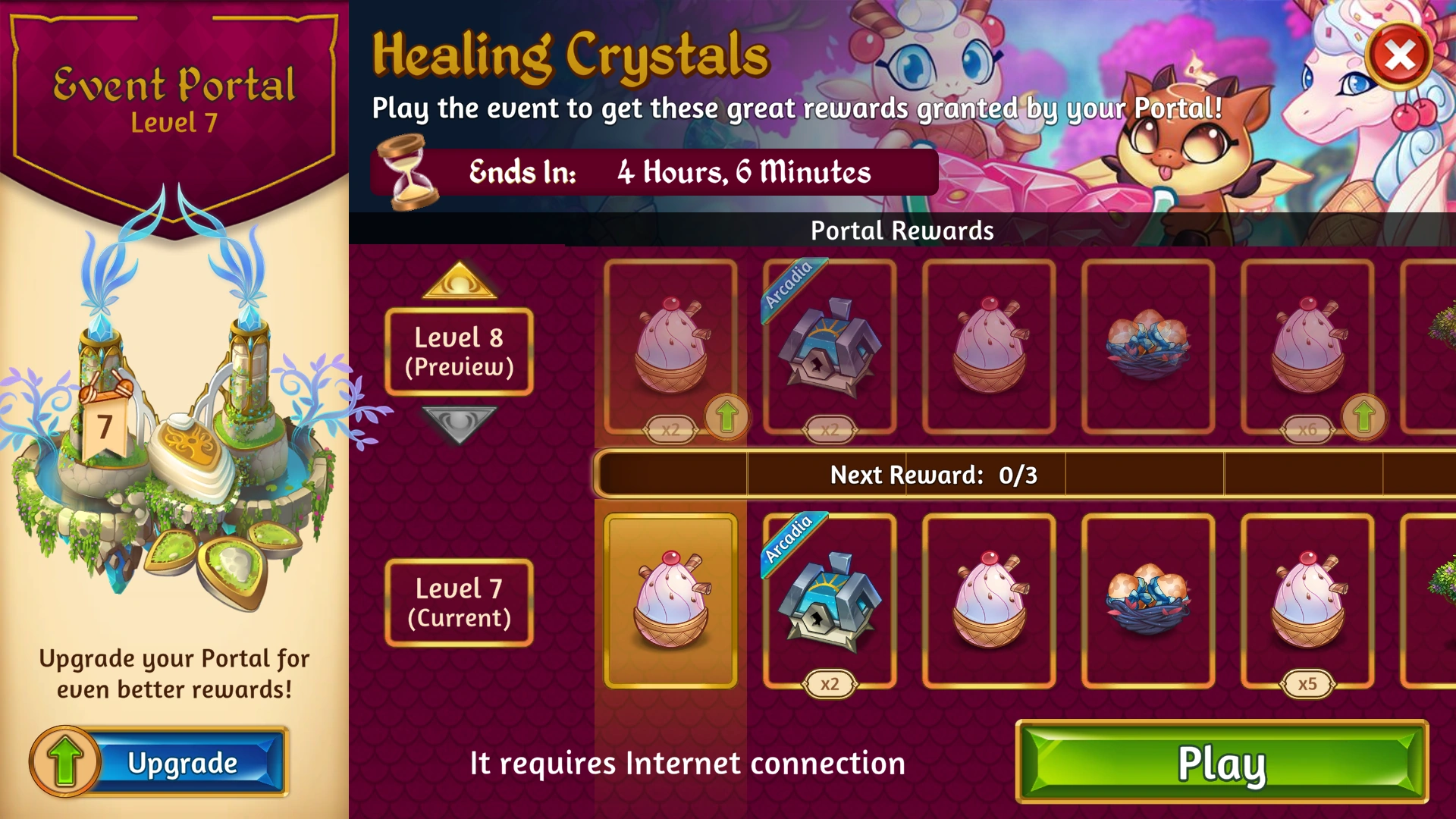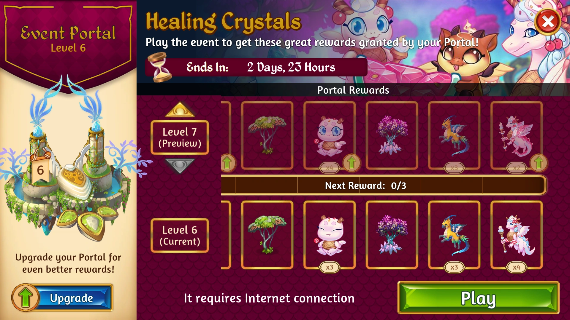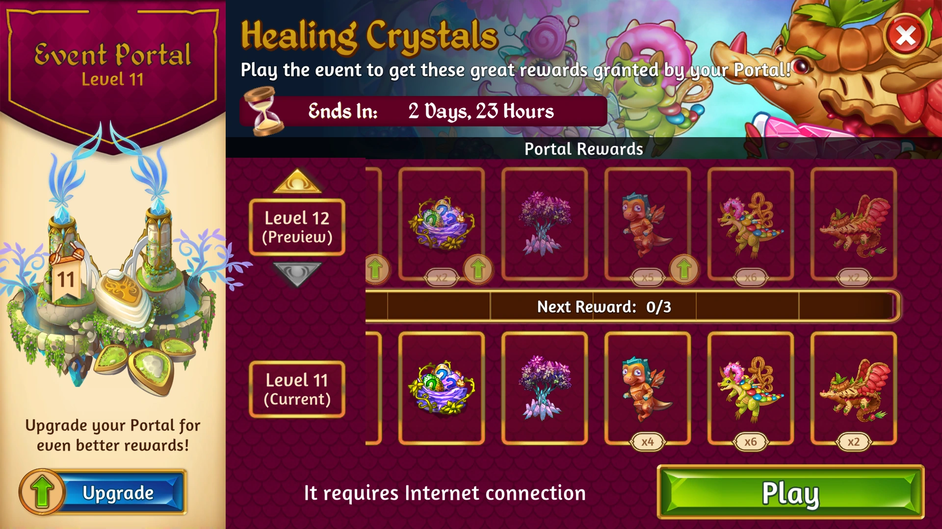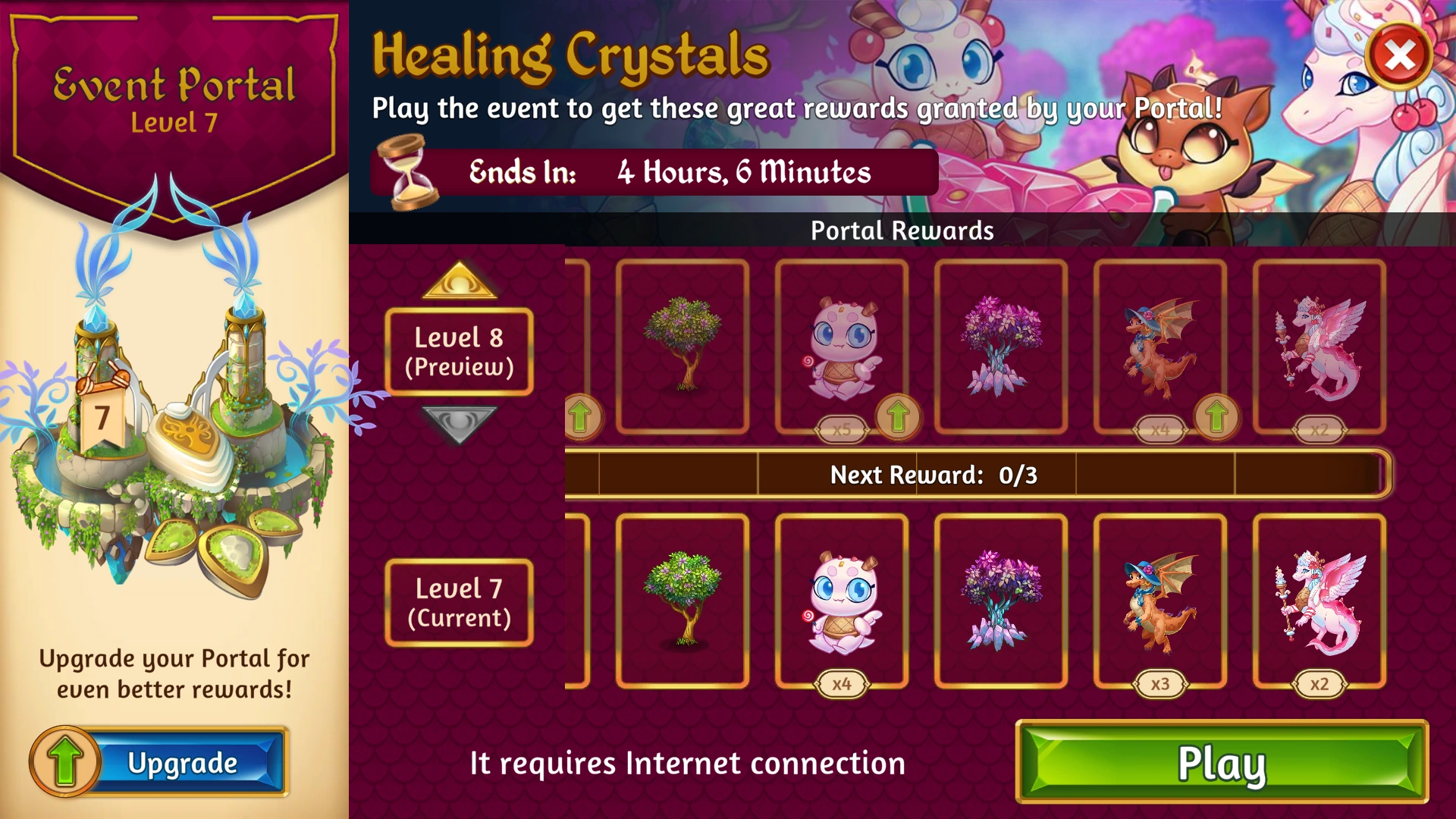 The seventh occurrence ran from the 2nd to the 5th of December 2022 with a different name - Healing Crystals Event, for both iOS and Android. A minimum of 100 Dragon Power was required in order to participate in the Event.