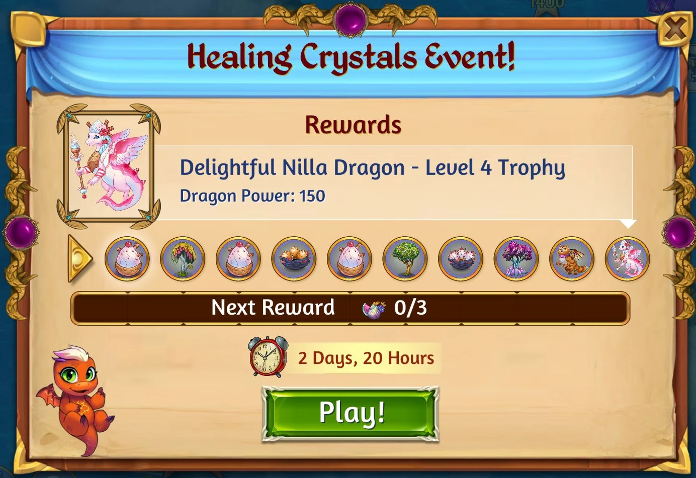 | 10 | Delightful Nilla Dragon - Level 4 Trophy | Dragon Power: 150 | 11,230* | 29,950* |